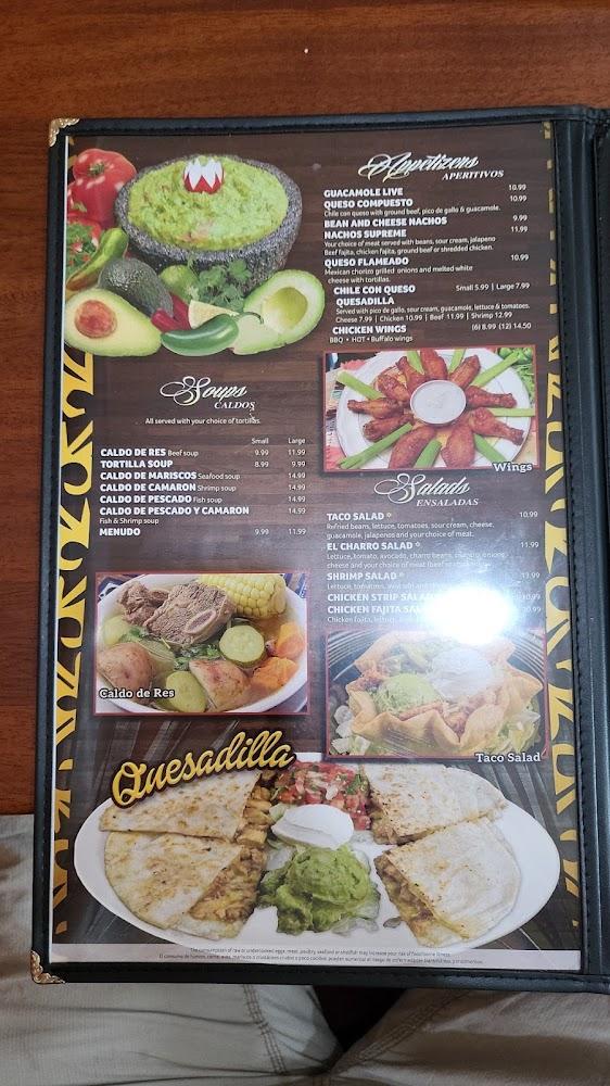 The appetizer selection features made-to-order guacamole and queso flameado, setting the tone for a delightful meal. Soups like caldo de res provide a comforting taste, perfect for chilly days. El Charro's menu caters to various tastes, including vegetarian options.